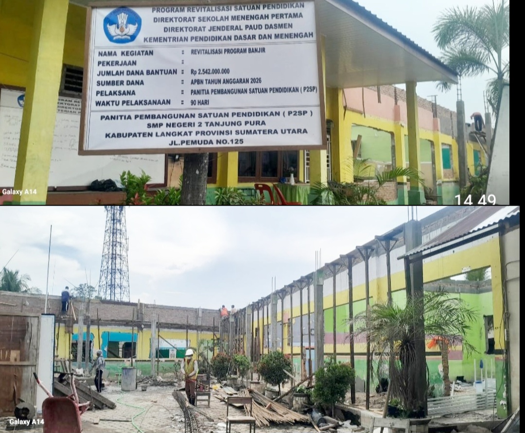 Proyek revitalisasi satuan pendidikan di SMP Negeri 2 Tanjung Pura, Kabupaten Langkat, Sumatera Utara, menjadi sorotan.8/4/2026